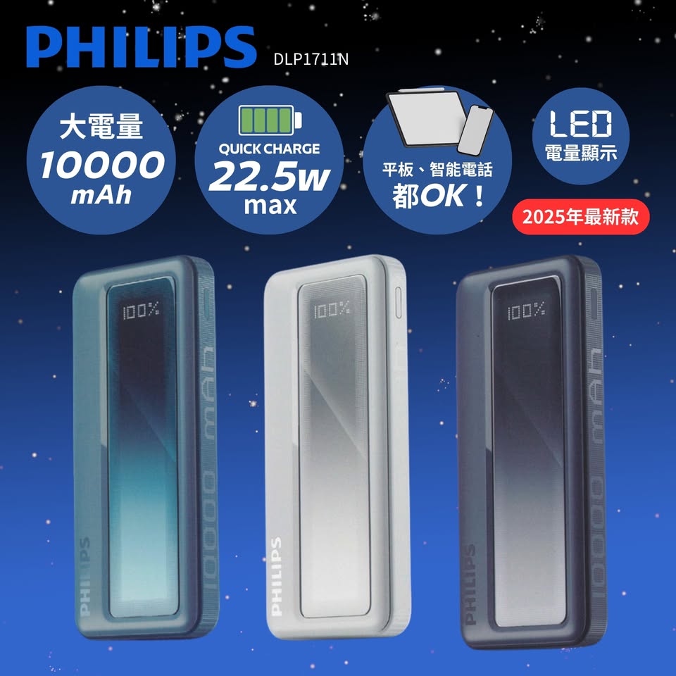 [開倉價$49!] PHILIPS 10000mAh 快充流動充電器 DLP1711N (三色可選)