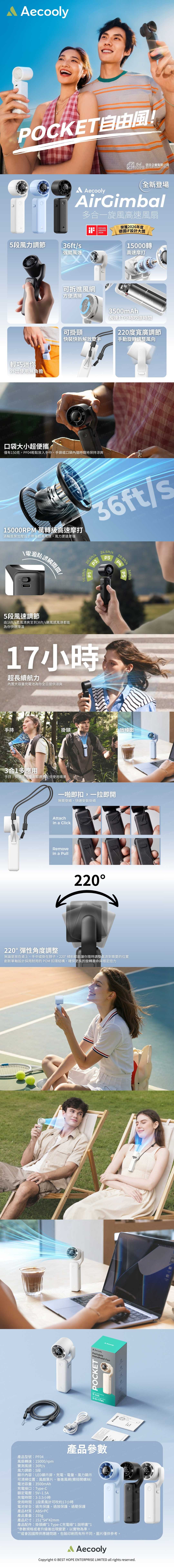 Aecooly Pocket AirGimbal 多合一旋風高速風扇 PF04 (三色可選)