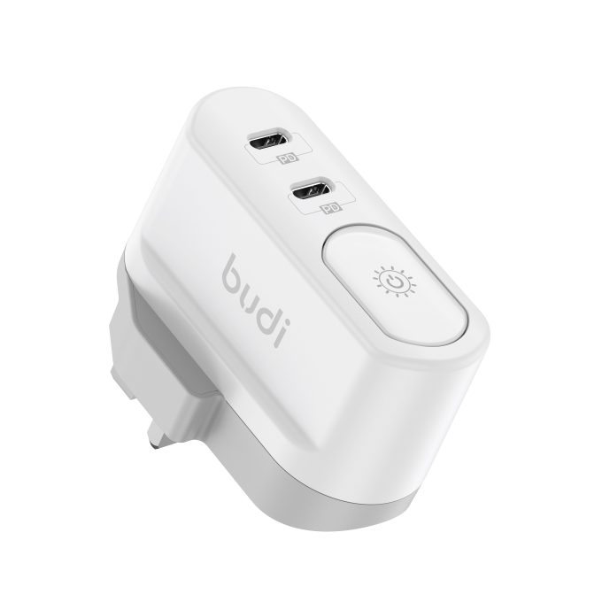 budi 2位 TYPE-C PD40W 夜燈二合一摺疊插頭快速充電器 AC326DUW