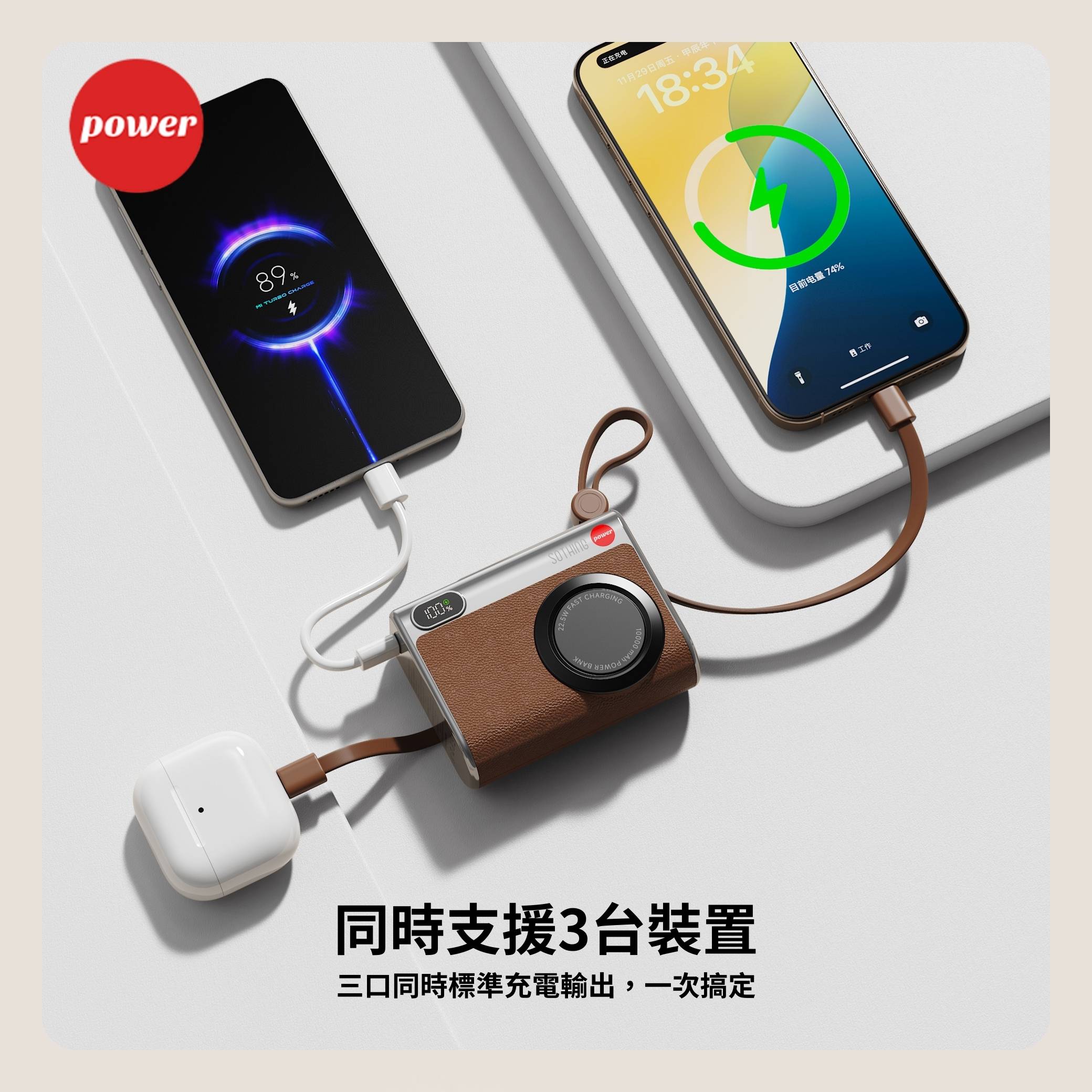 USB-C 單口用最高達PD22.5W輸出Lightning最高達20W輸出